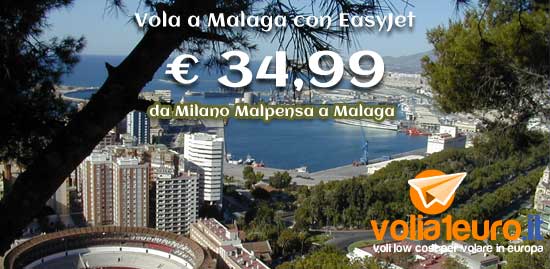 Cosa c’è di meglio di un volo low cost per fuggire dalla routine, e concedersi un bel viaggio in qualche località magari esotica? Stasera vi proponiamo un’offerta che vi porta da Milano Malpensa a Malaga, il tutto a soli 34,99 euro con EasyJet. Malaga è la città natale del grandissimo pittore Pablo Picasso, una meta ideale per chiunque ami il suo genio e la sua arte.